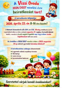 Tájékoztató az óvodai beiratásról, a 2026-2027 nevelési évre. Kérjük olvassák...